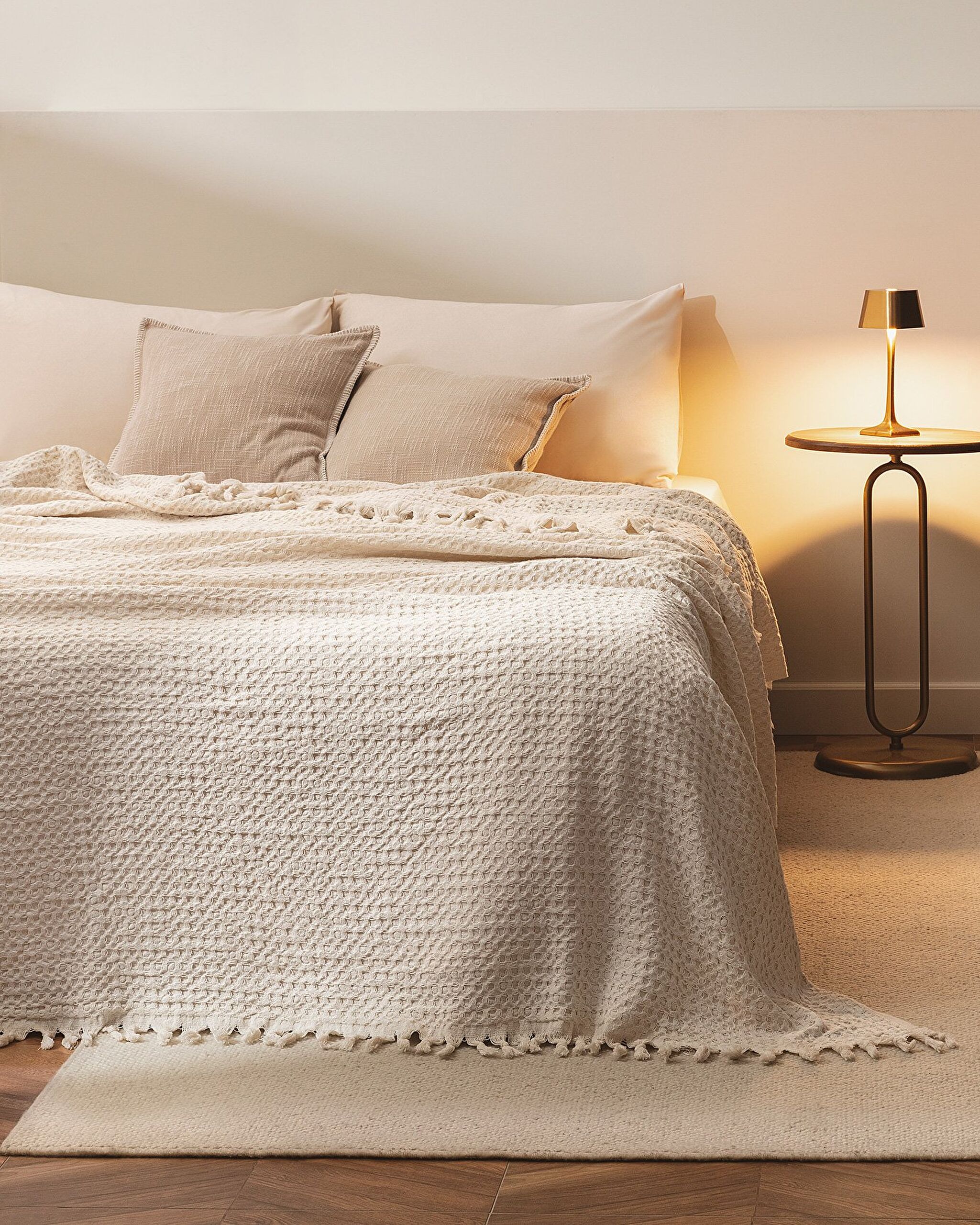 The cotton bedspread, which has a very elegant and stylish appearance with its design consisting of ethno-modern texture, will be a brand new comfort for your bed...