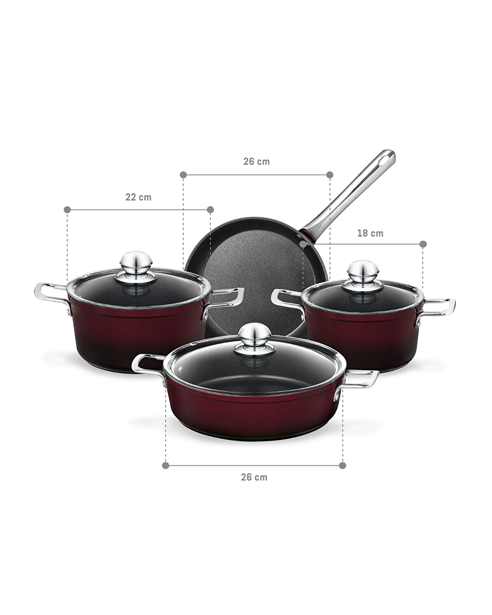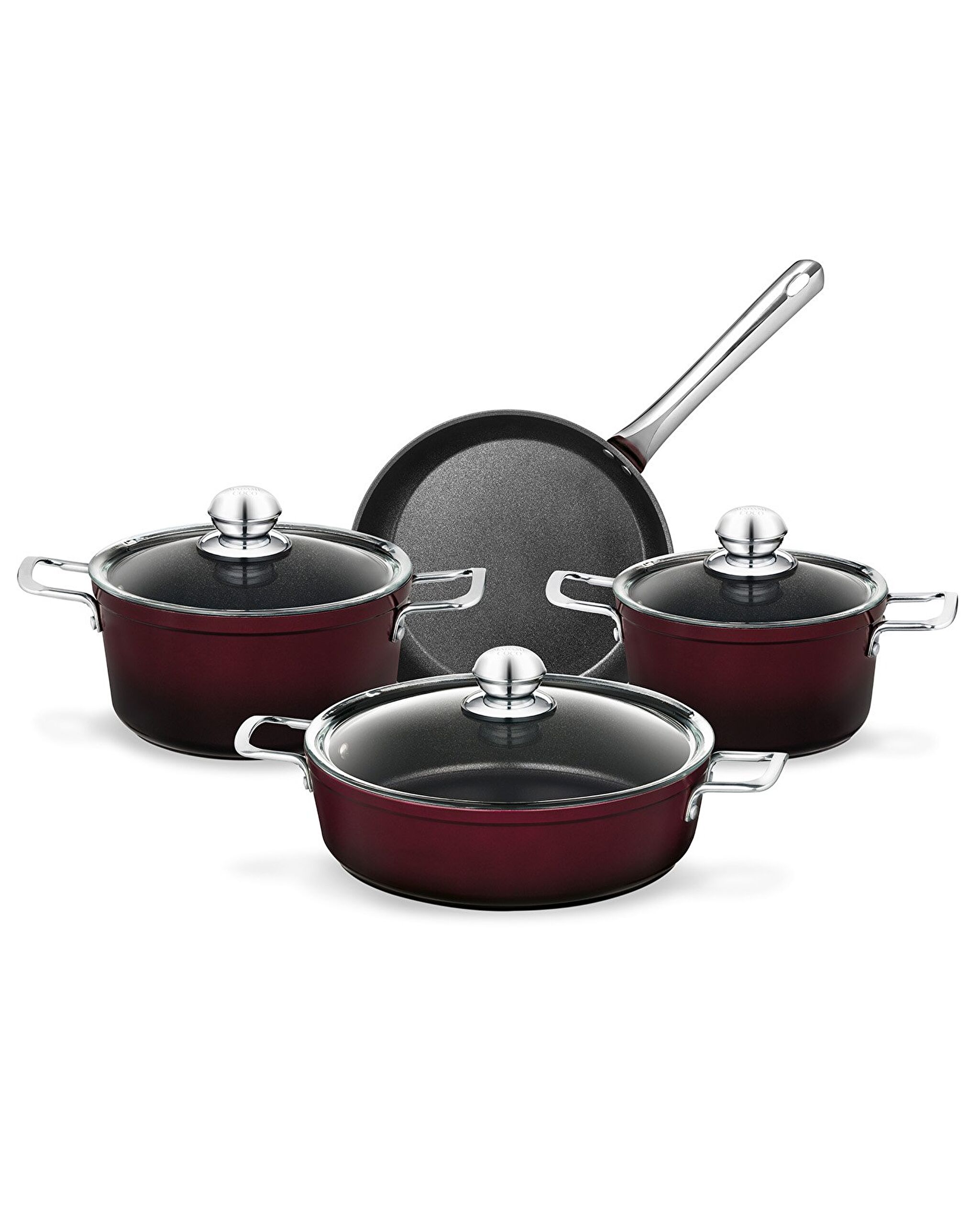Titanium Professional Cookware Set 7 Pieces - Claret Red