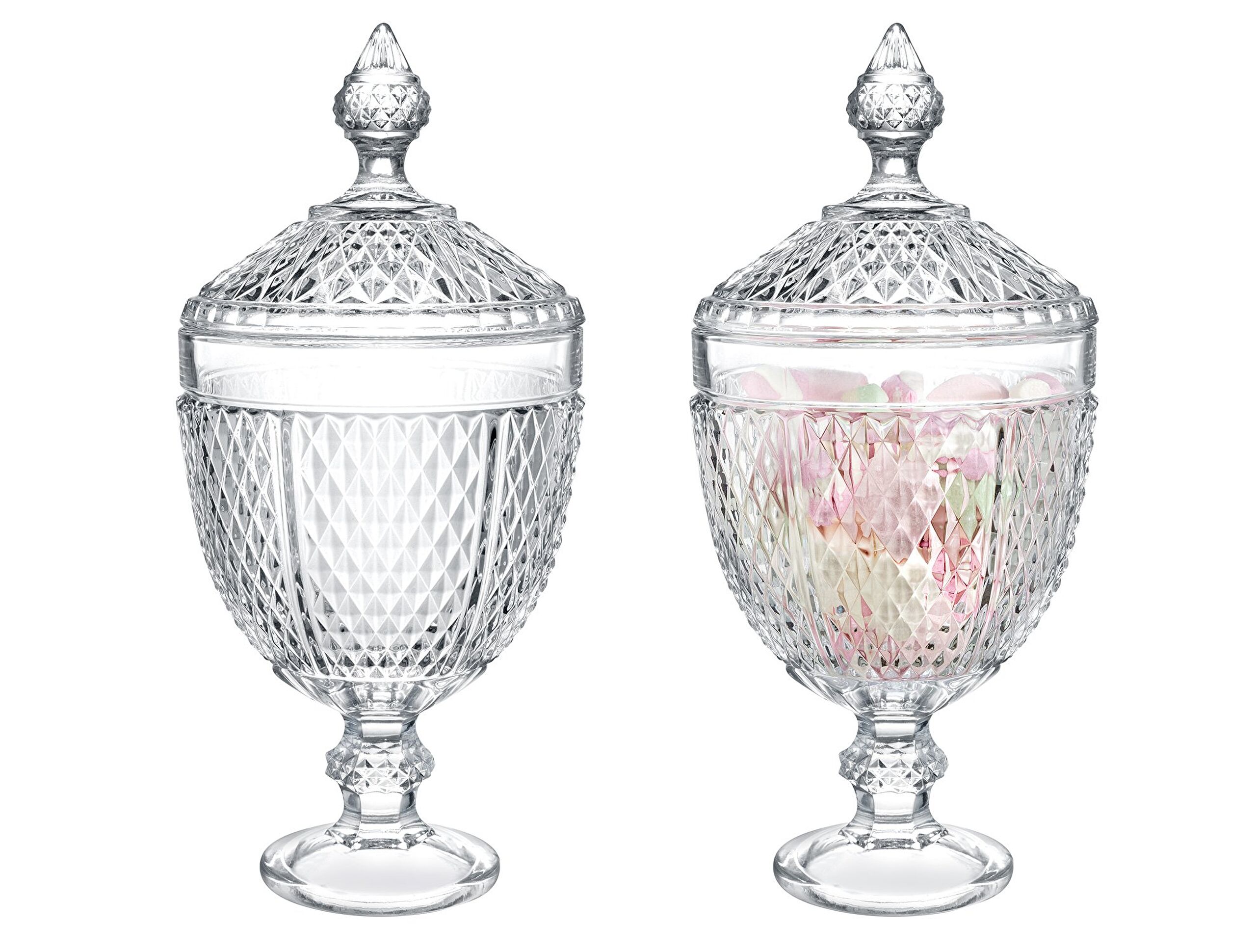 Design suikerpotten, waarbij de klassieke stijl moderne ontwerpen inspireert, zijn verkrijgbaar bij Madame Coco... Glass Sugar Bowl is een glazen suikerpot waarmee je kleine snoepjes, Turkse lekkernijen, zoete snacks enz. erin kunt doen. Het geeft je lekkernijen een stijlvolle uitstraling. Madame Coco glazen suikerpotten wachten op u om uw nieuwe detail te worden dat elegantie zal toevoegen aan uw keukeninrichting, woonkamer of eetkamer. Voeg stijl toe aan je interieur door glazen suikerpotten in verschillende stijlen en maten te kopen!Technische specificaties: