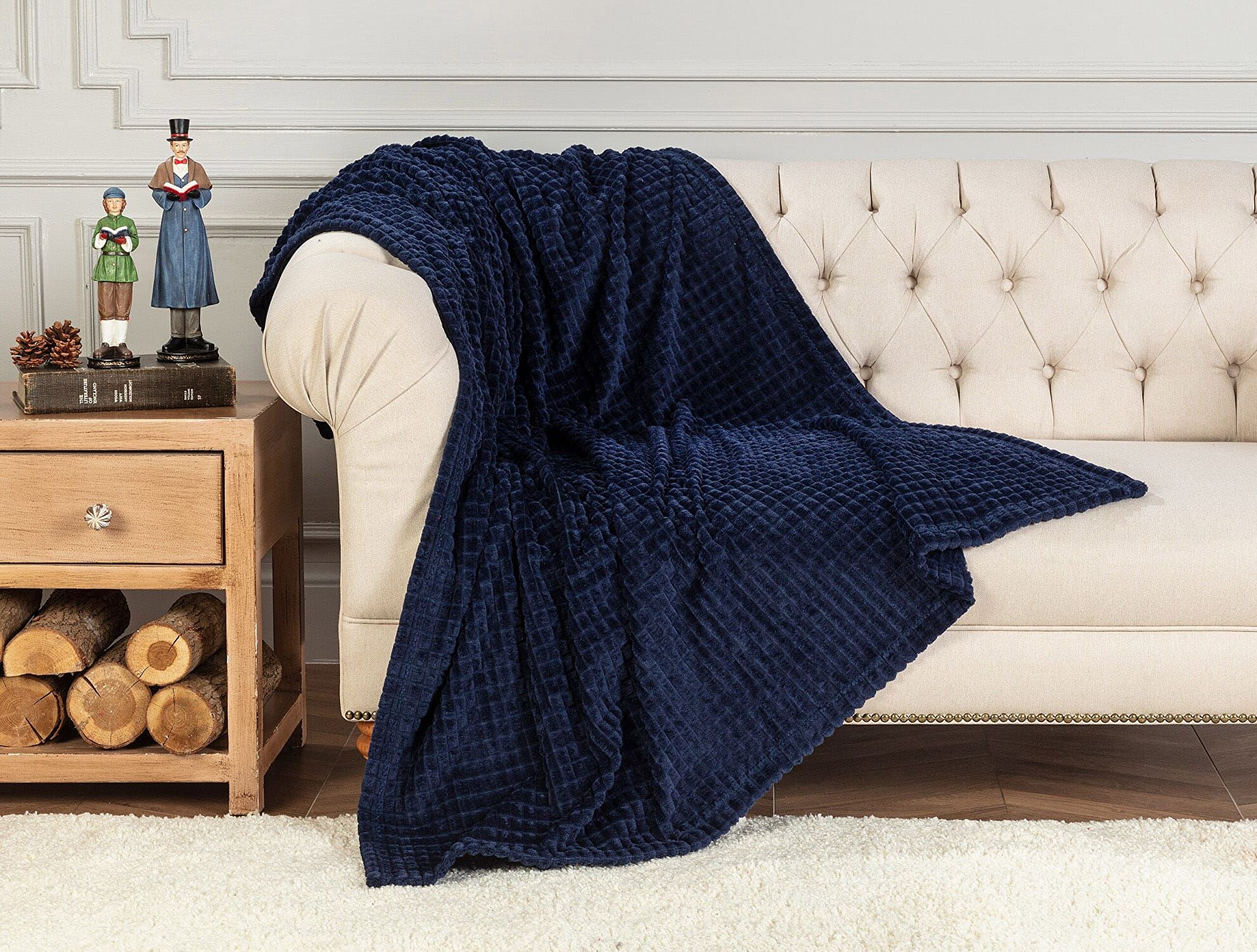 Emile Wellsoft Double-Sided Emboss TV Blanket - Navy Blue