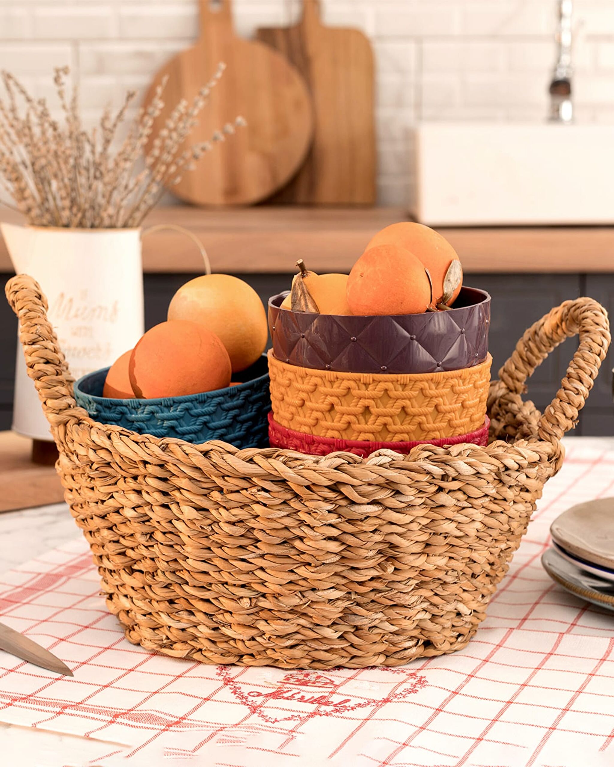 Lilla Hasır Sepet ile yaşam alanınıza rustik bir hava katın. Doğal görünümüyle ortama sıcaklık katan bu hasır dekoratif sepet, fonksiyonel depolama seçeneği sunan mükemmel bir tasarıma sahiptir. Mutfağınızdan oturma odanıza, banyonuzdan antrenize kadar her yerde kullanabileceğiniz Lilla Hasır Sepetin yaşam alanınıza getireceği doğal stili seveceksiniz.