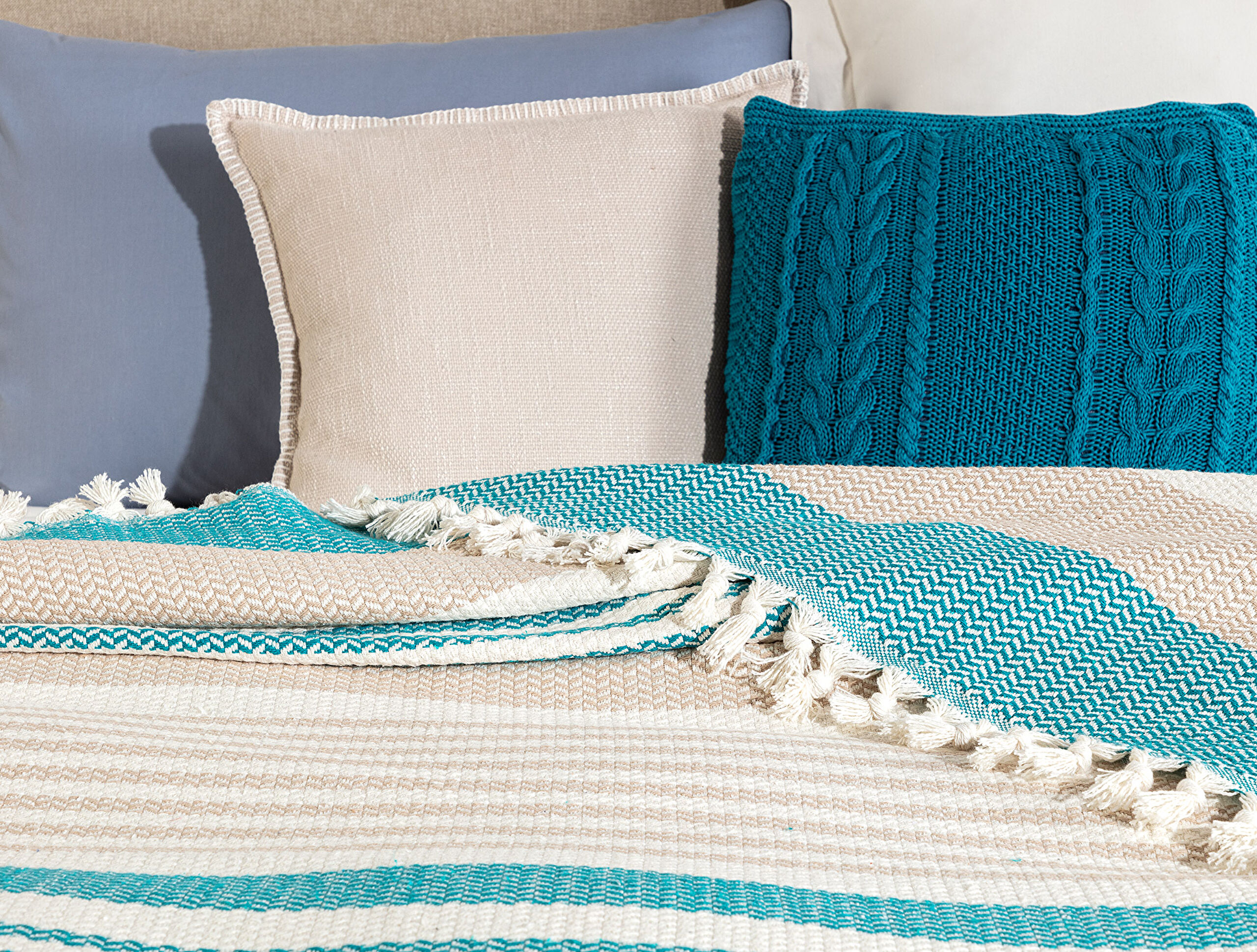 Ecru/Peacockblauw