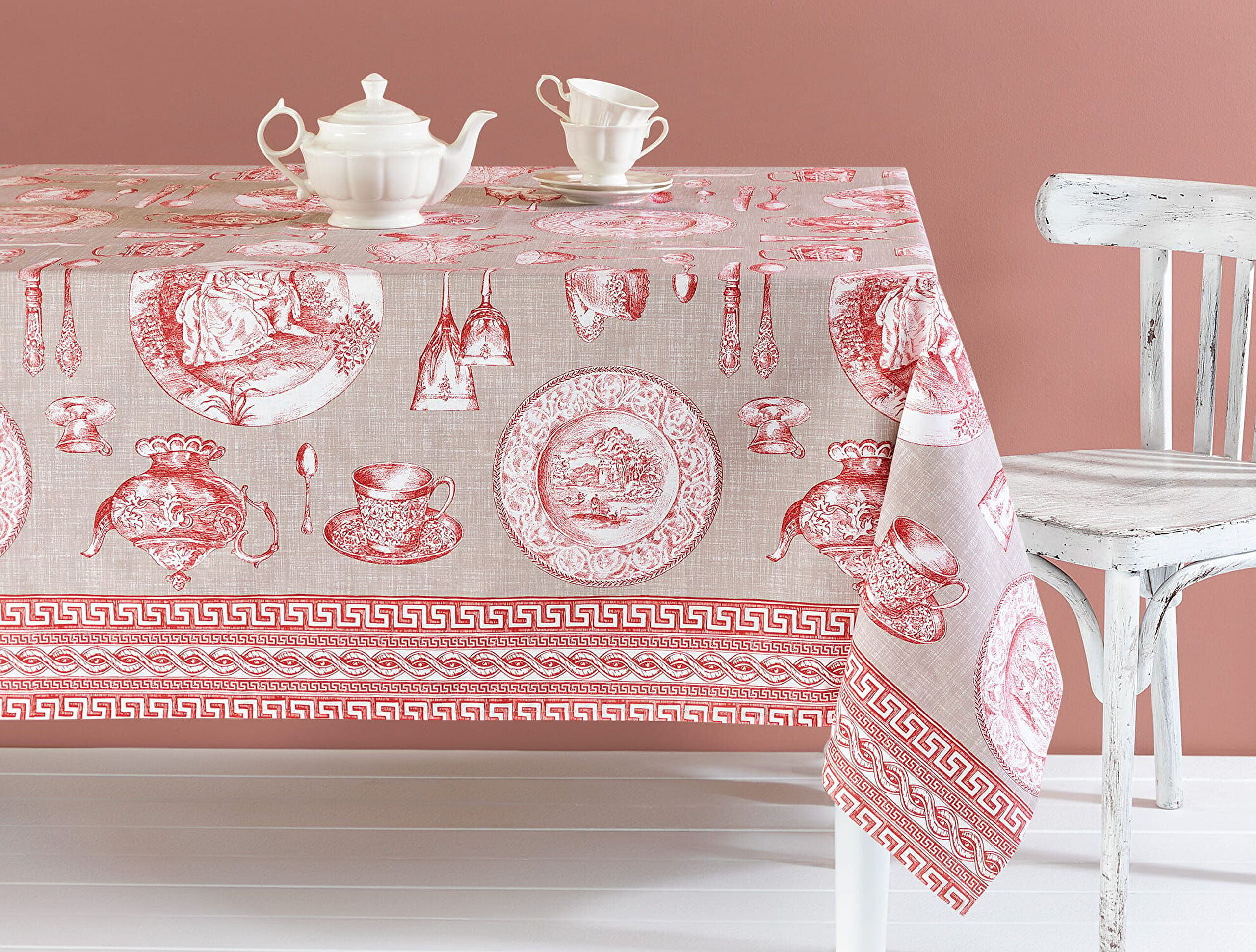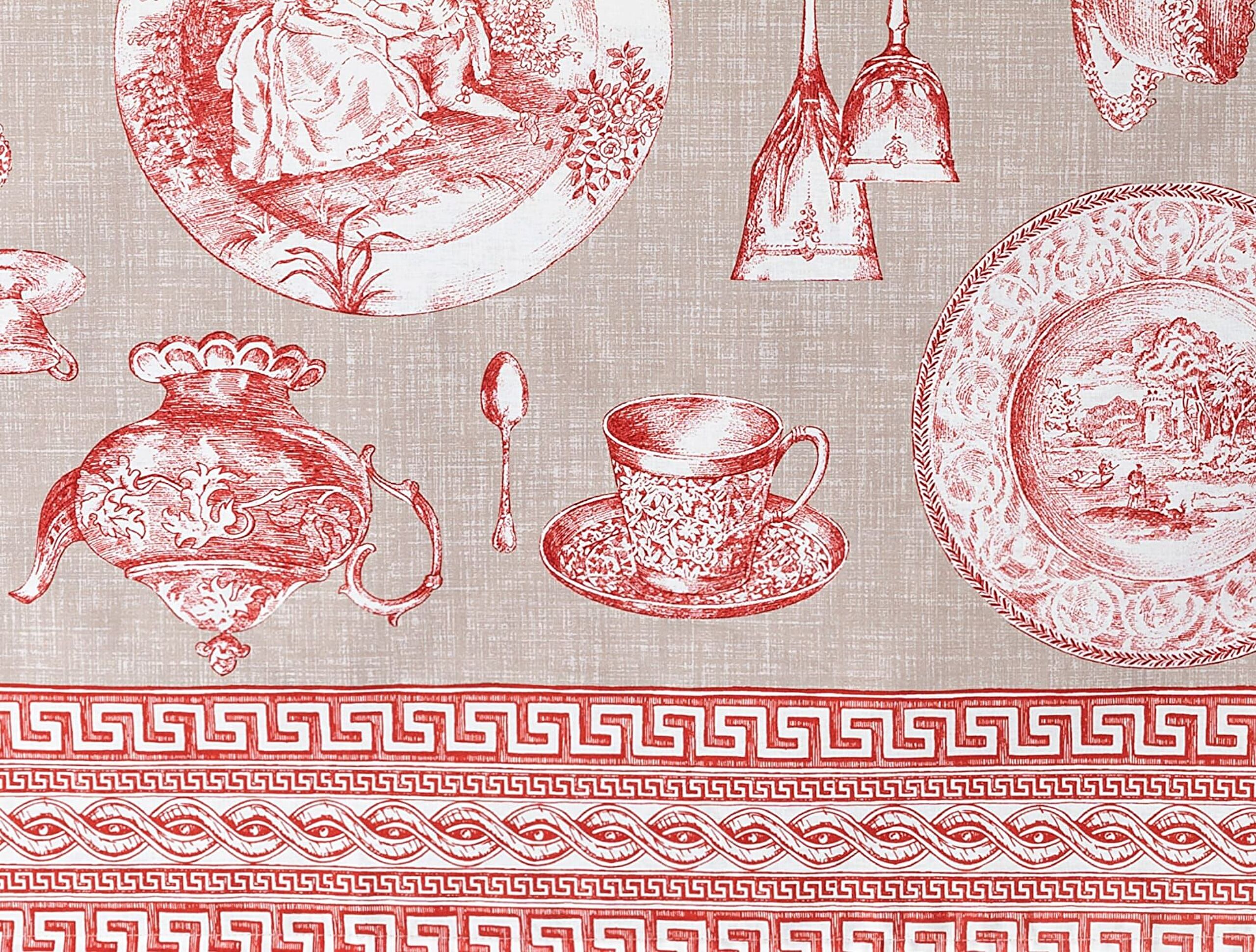 Pompere polykatoenen tafelkleed - Beige/Rood