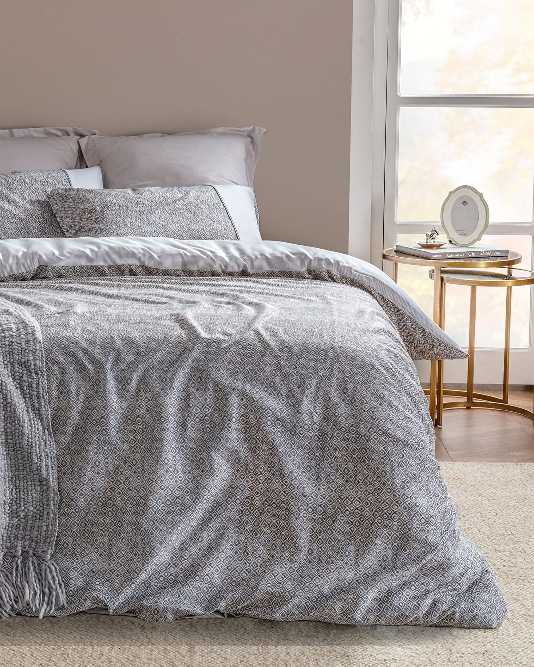 Diane Tweepersoons Madame Coco Crep Dekbedovertrekset met print - Grijs