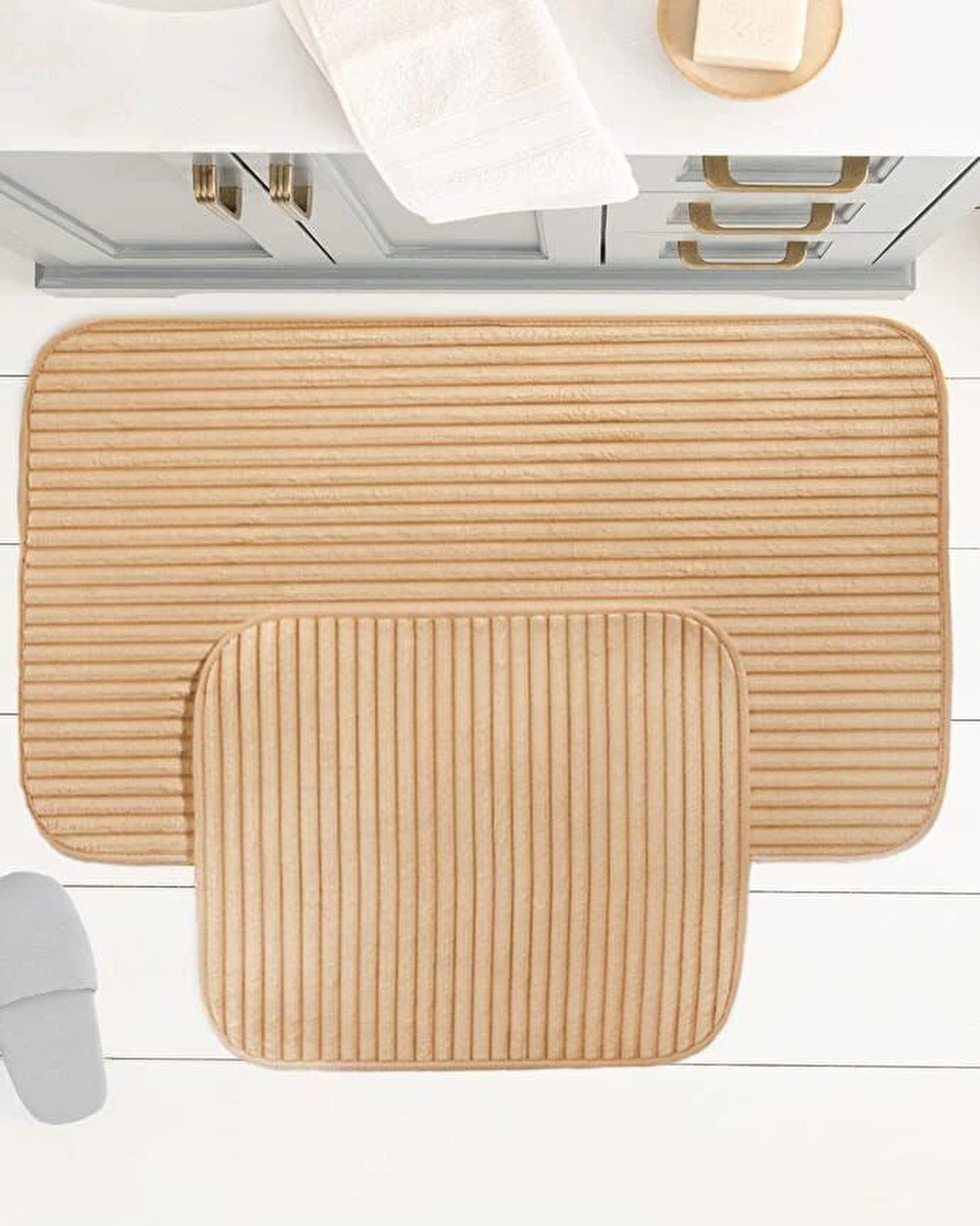 Geniet van comfort bij elke stap dankzij de zachte structuur van de Mathilda Badmat. Deze 2-delige badmat combineert stijl en comfort en past dankzij de stijlvolle kleuropties gemakkelijk in uw badkamerinrichting.